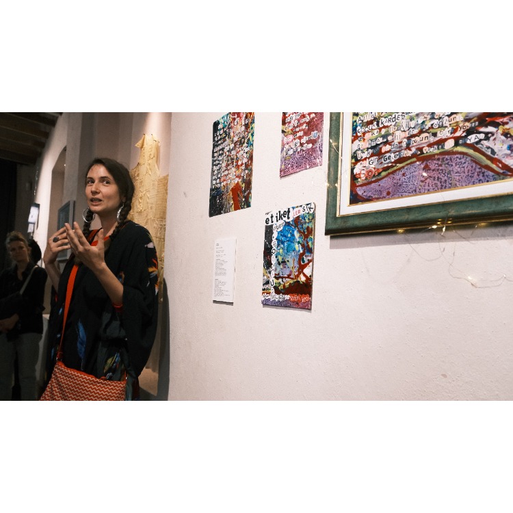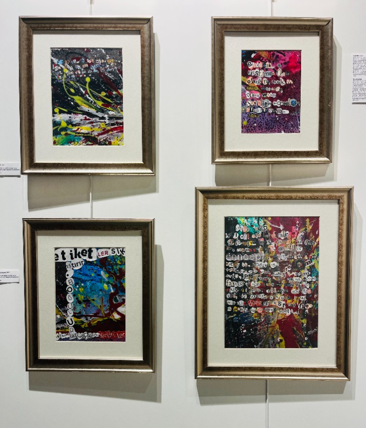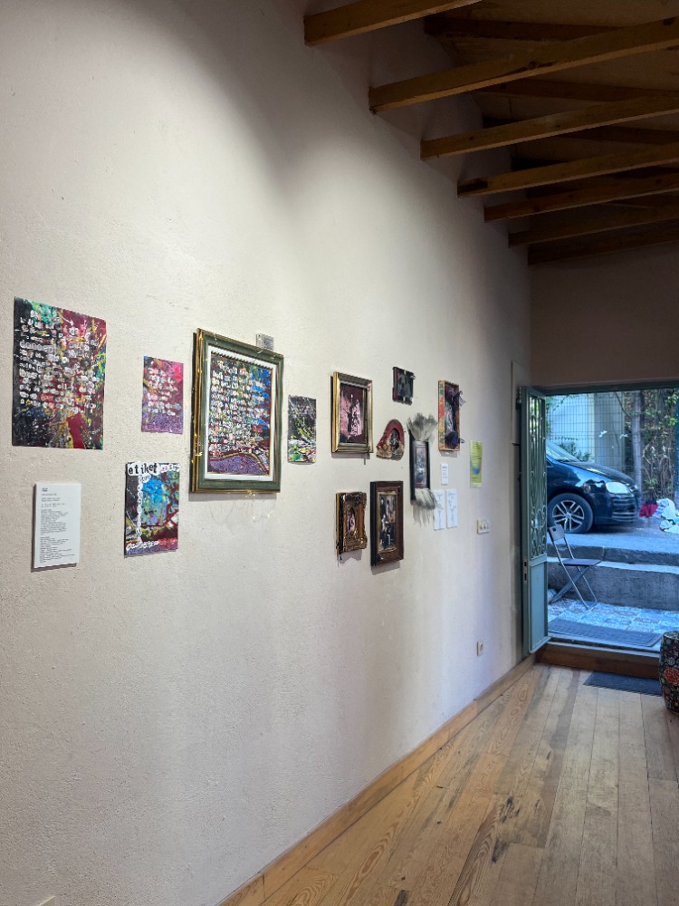 Inspired by the book of the Iranian Sufi poet Attar, which tells the story of birds who seek God and end up finding themselves, I’m working on a new series. For this series, I transformed my poem Round World, which speaks of freedom, into collage works in both Turkish and English. The full text of my poem shown in the artwork reads: